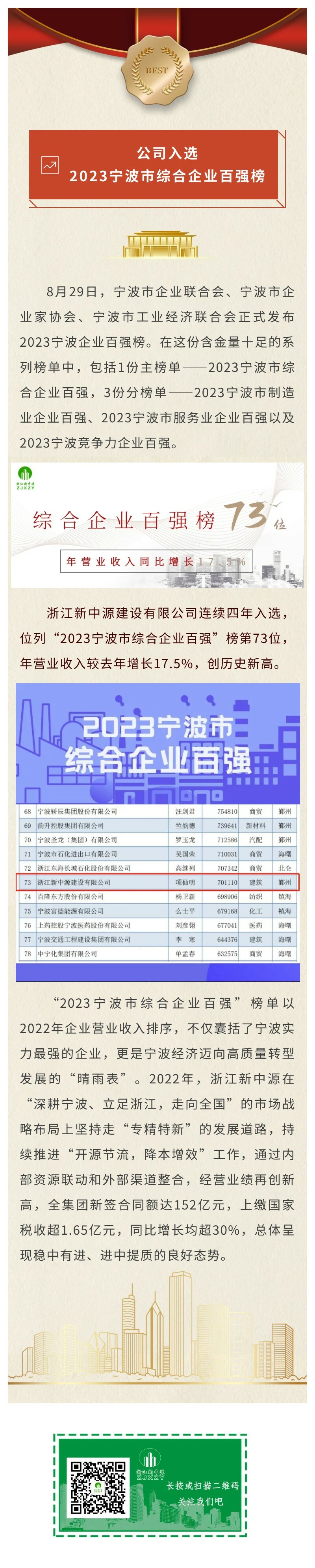 踔厉奋发 | 公司入选2023宁波市综合企业百强榜