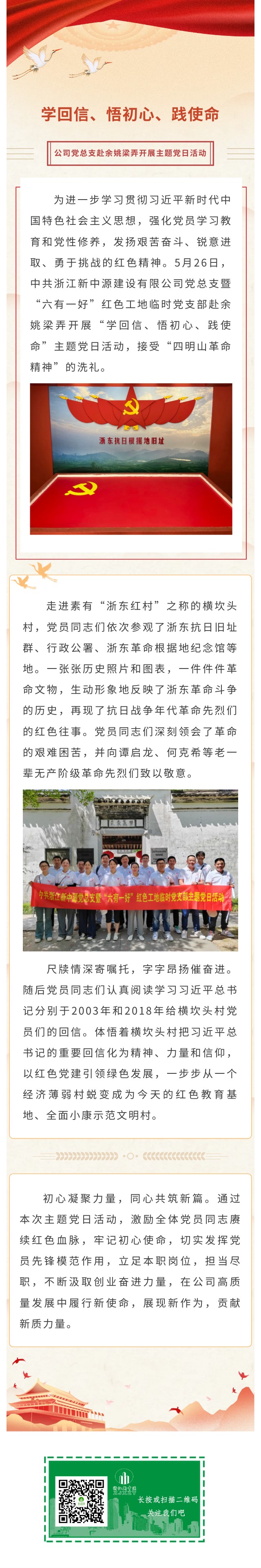 学回信、悟初心、践使命 | 公司党总支赴余姚梁弄开展主题党日活动